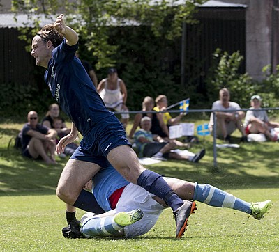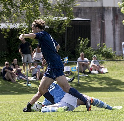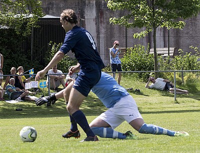 Minut 22: Fin Flagg-nick strax utanför målet hos målvakten Pontus Peersson.