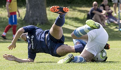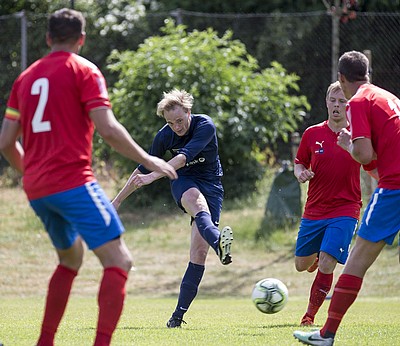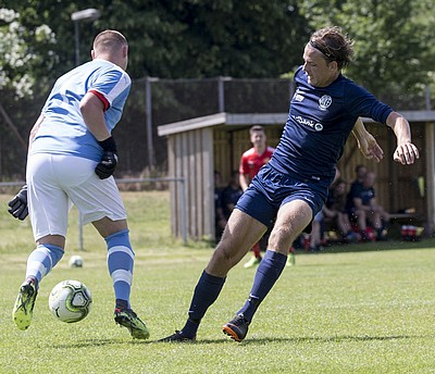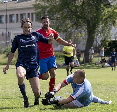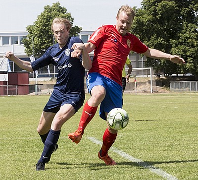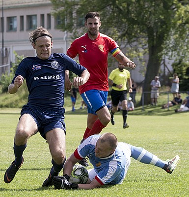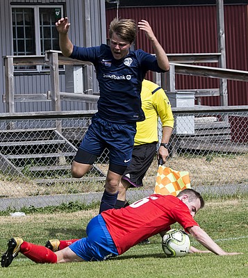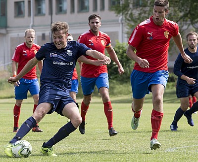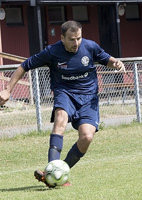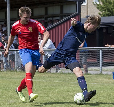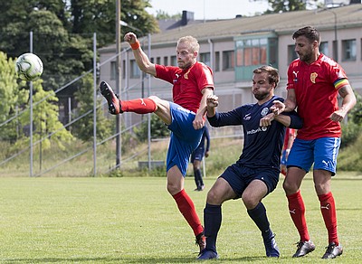 Minut 39: Flaggs André Borg kommer i friläge. Men lobbar bollen utanför det öppna målet. Pontus Persson rusade ut och täckte bra.