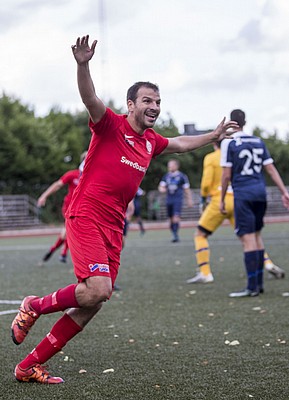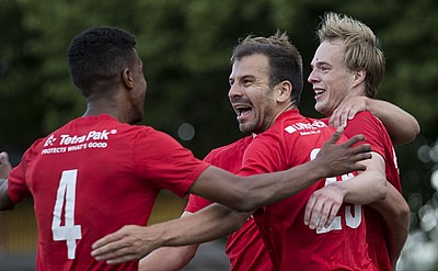 Minut 94: På övertid blir Gjenis Zeqiri sopren inom straffområdet och med matchens ista spark skjuter han för Laholm mycket viktiga 2-0. Två mål på bortaplan!