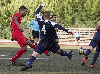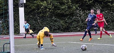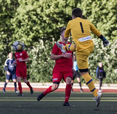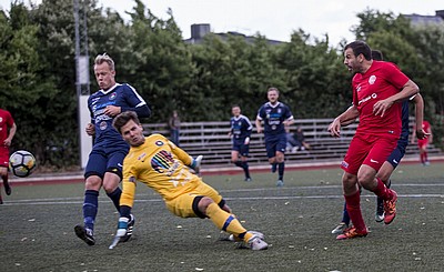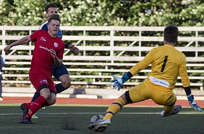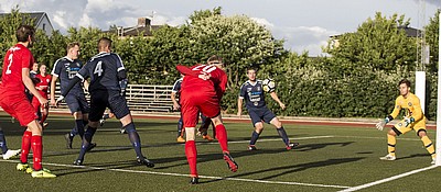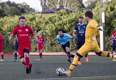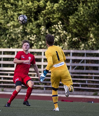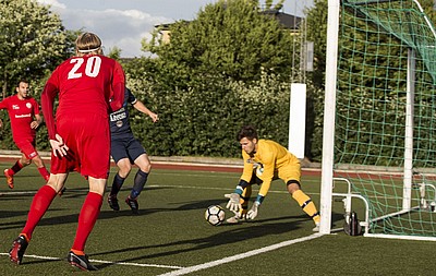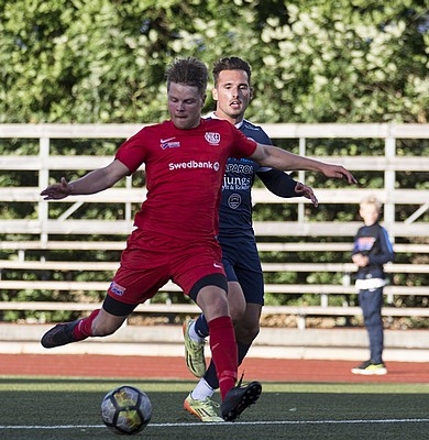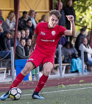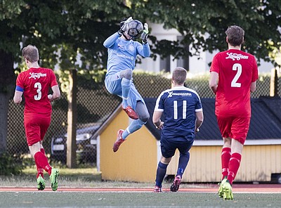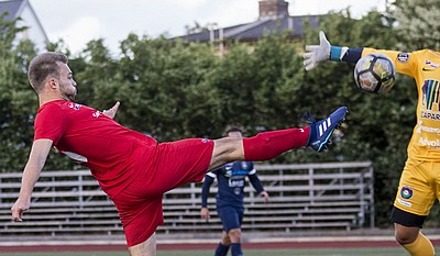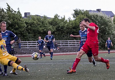 Minut 39: Flaggs André Borg kommer i friläge. Men lobbar bollen utanför det öppna målet. Pontus Persson rusade ut och täckte bra.