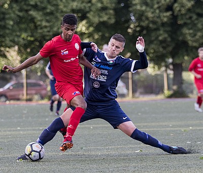 Minut 75: Nikes Christian Piema sätter bollen i ena stolpen. Alltså inget Nike-flyt.